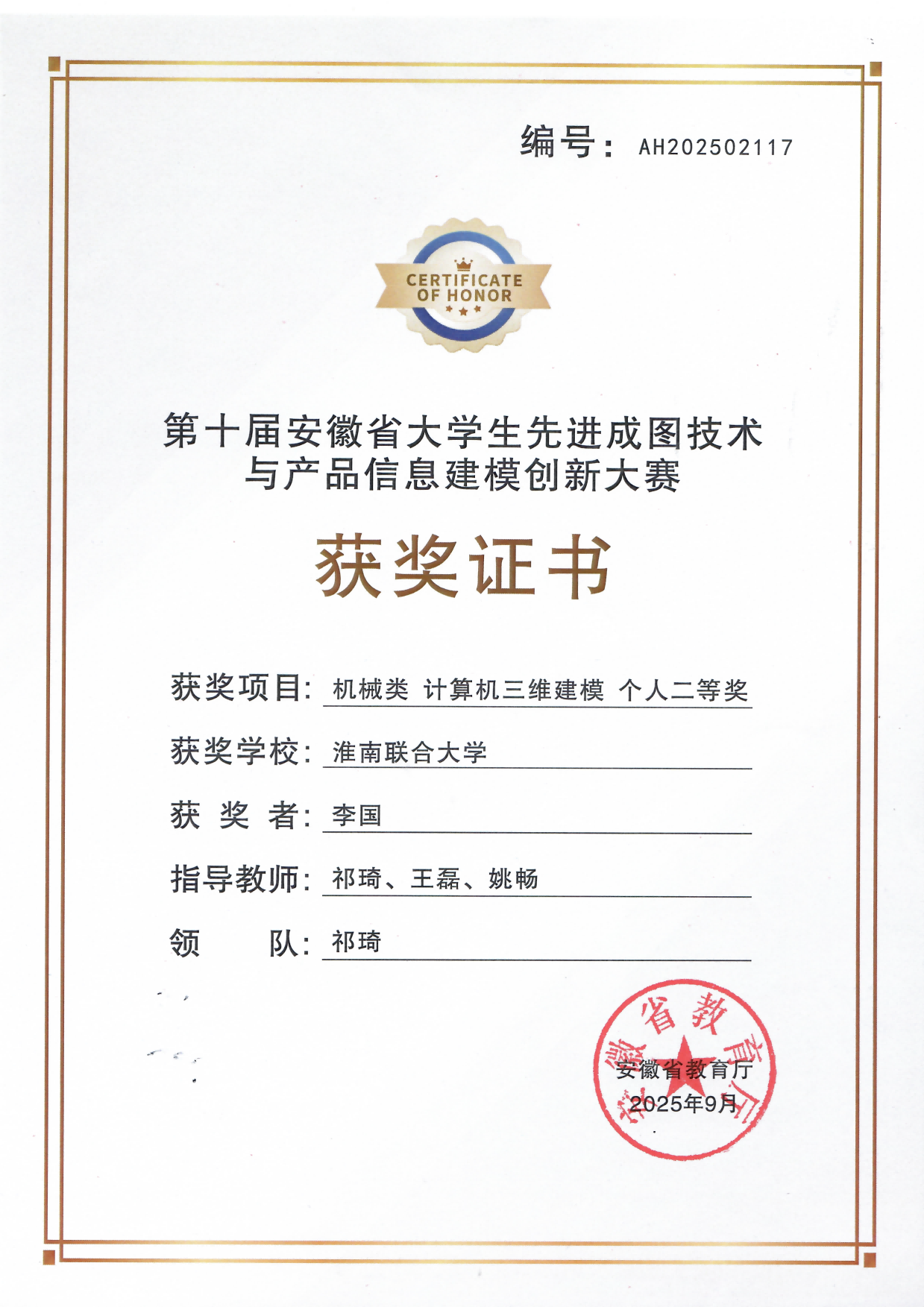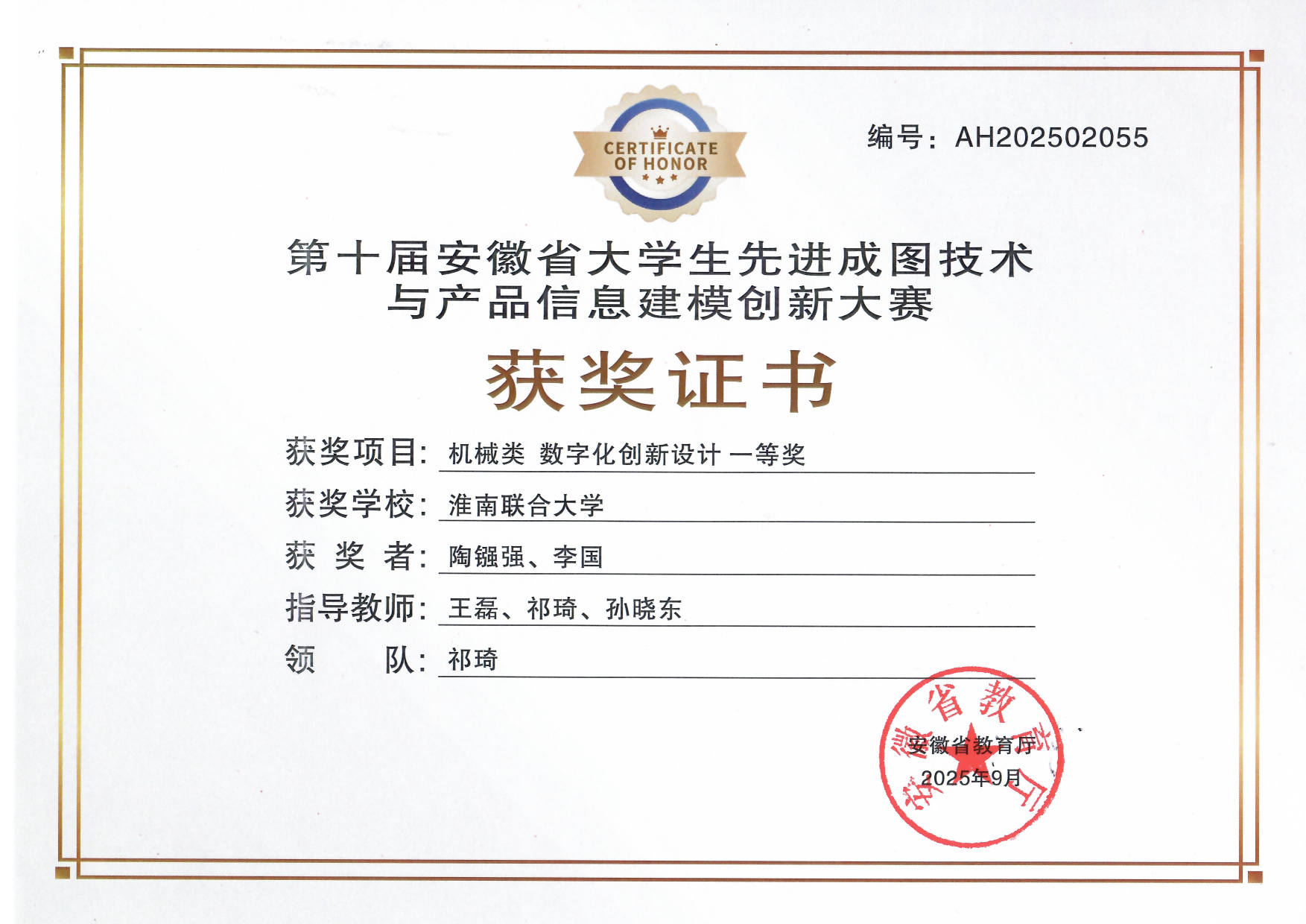 兼职教师4人,其中:省级技术能手1名,淮南市技术能手3名。