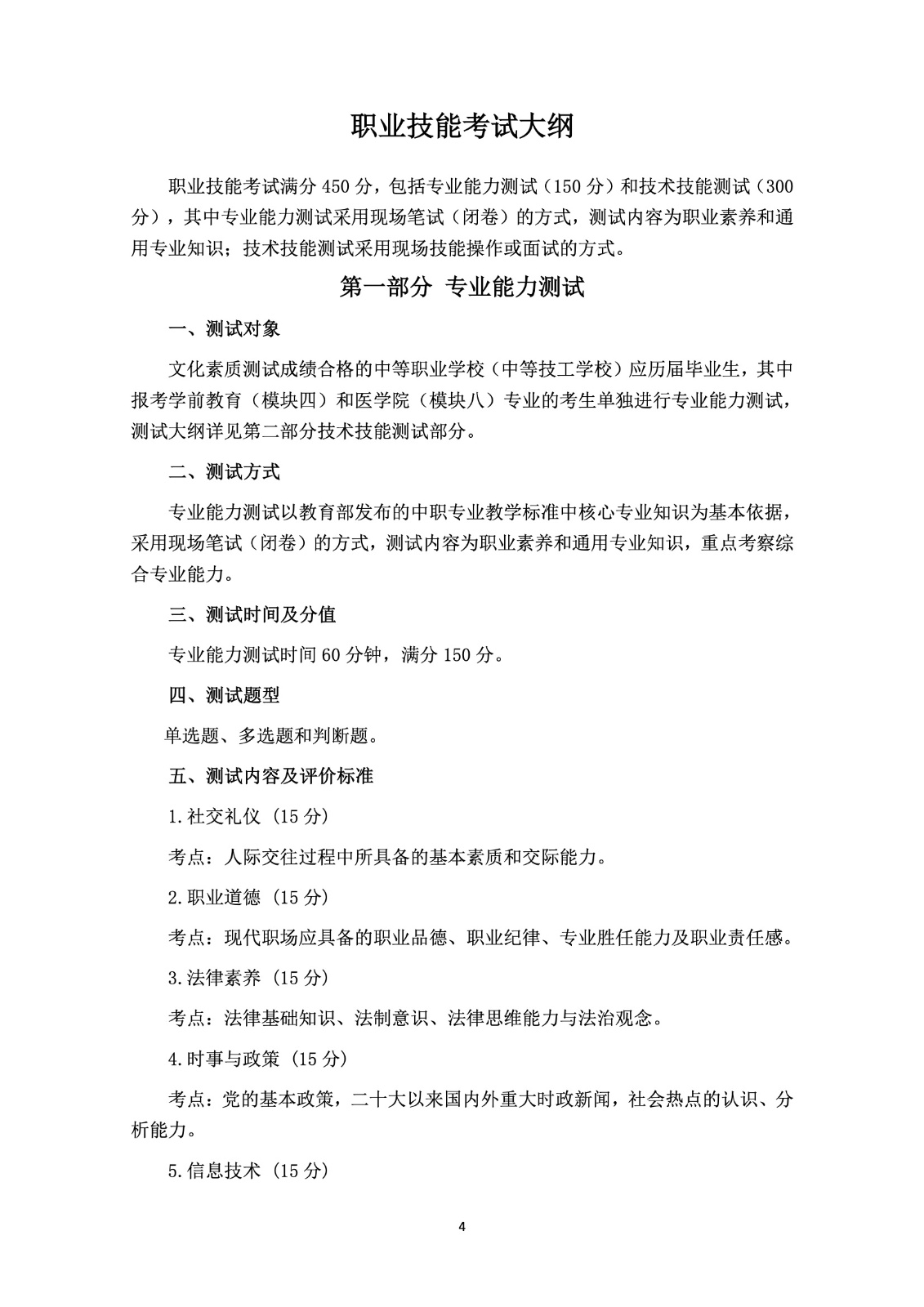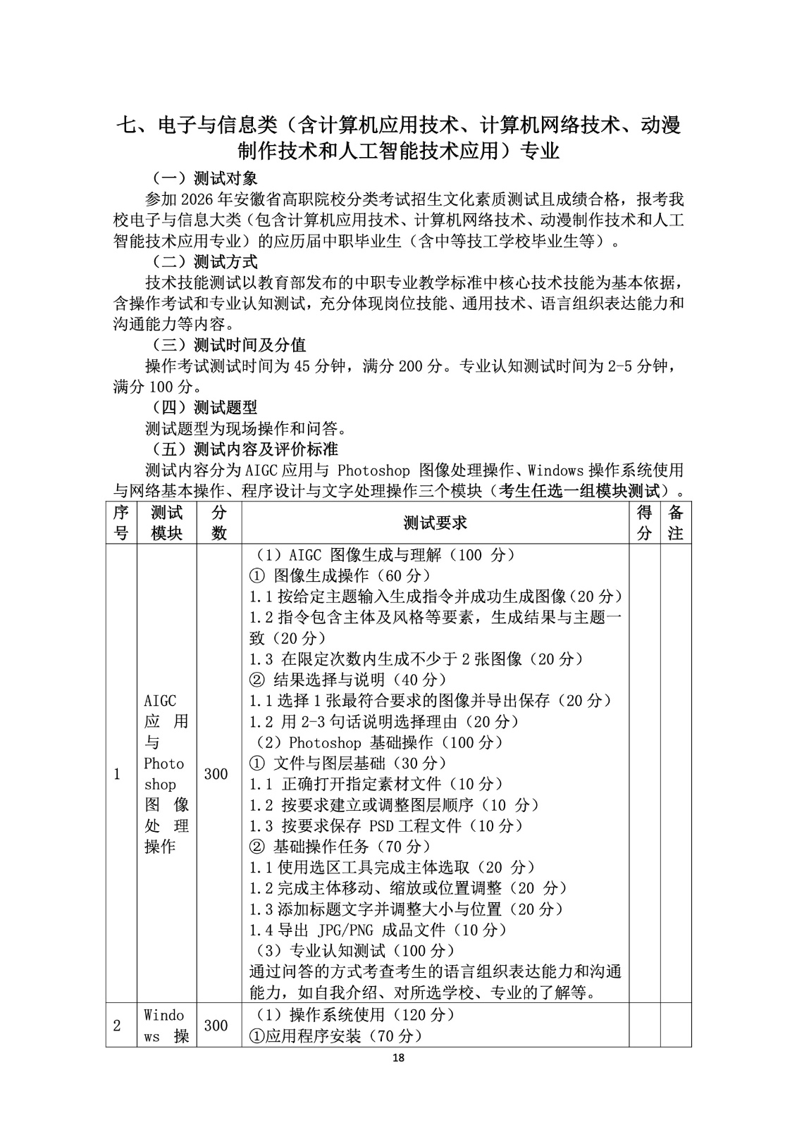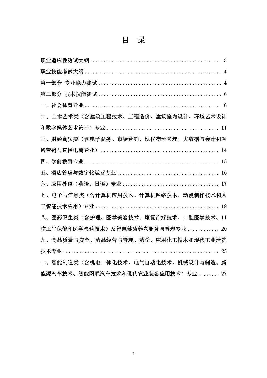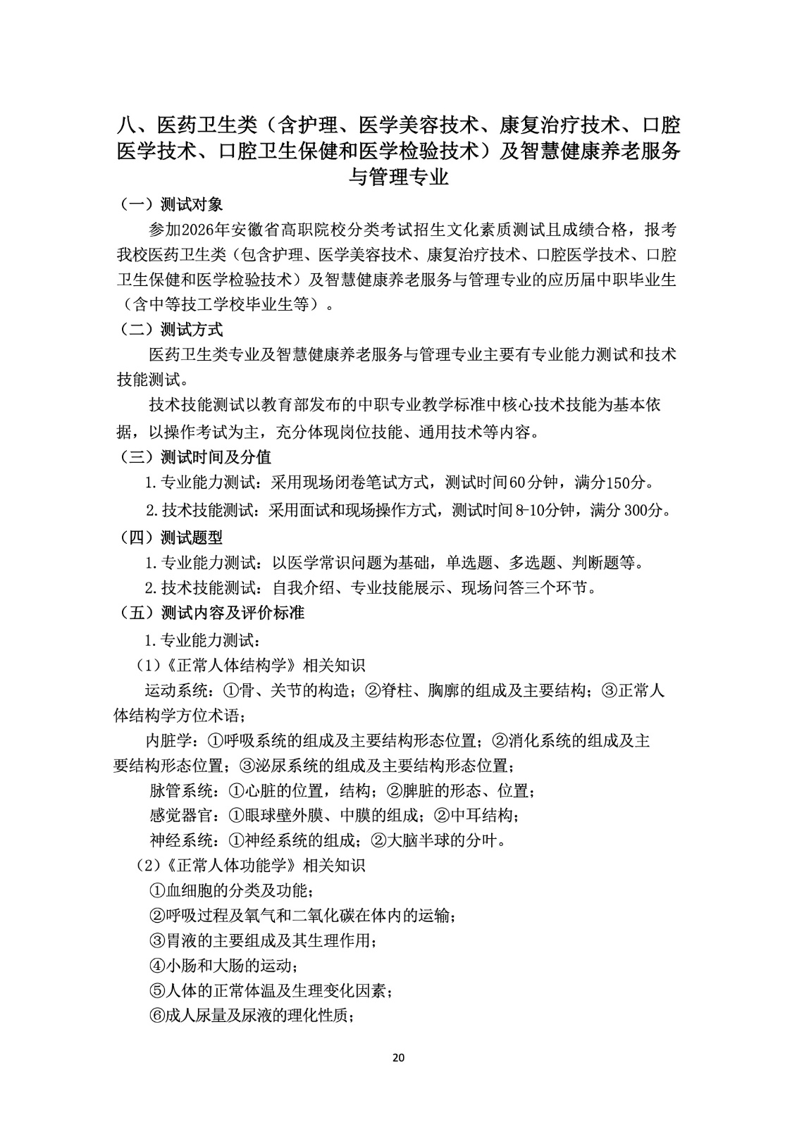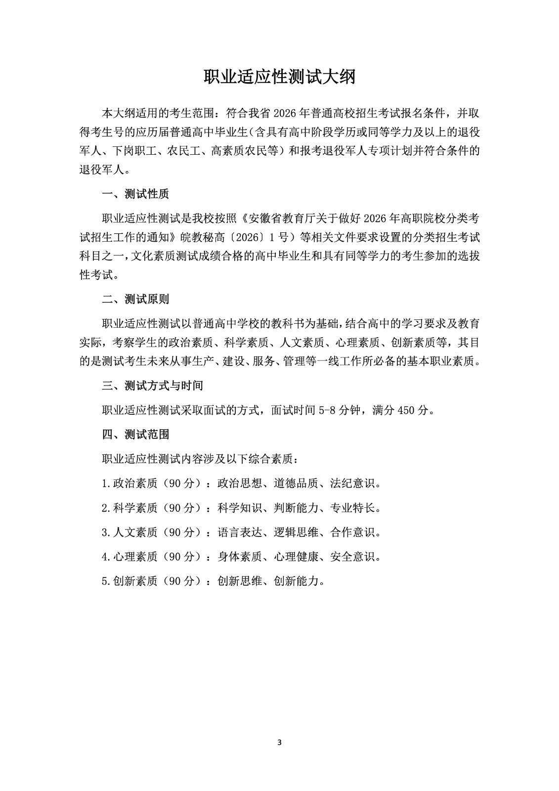 2026年分类考试招生测试大纲