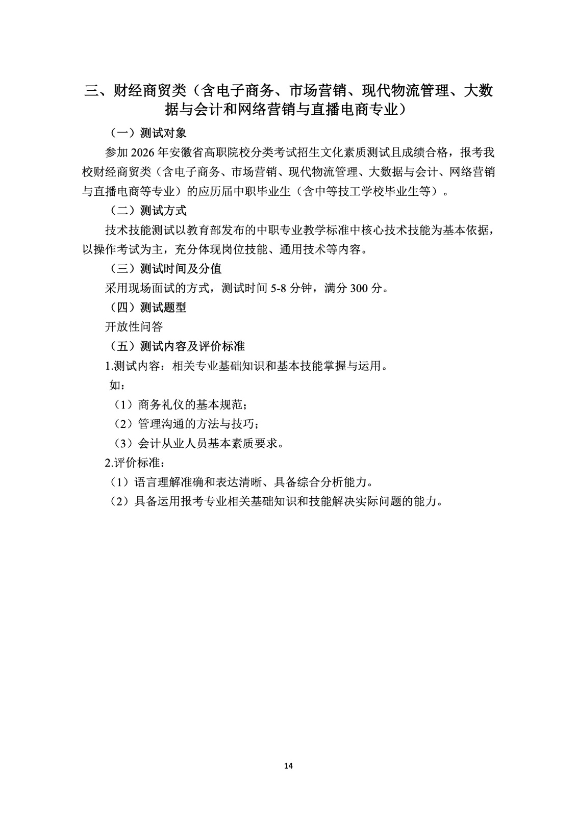 淮南联合大学2026年分类考试招生测试大纲.pdf